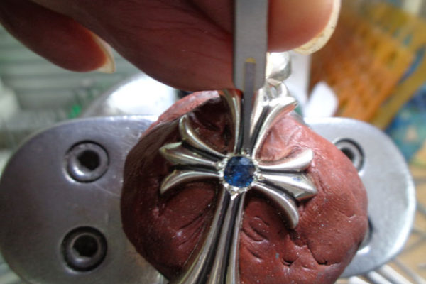 CHクロスペンダント スモール with ベイルにサファイヤを1石カスタムします。 【かかった費用】 クロスペンダントSMのセンターにサファイヤを1石カスタム0.472カラット 総額 75,000円(税別)