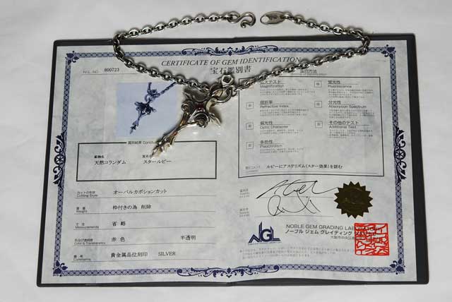 スタールビーを証明する宝石鑑別書です。