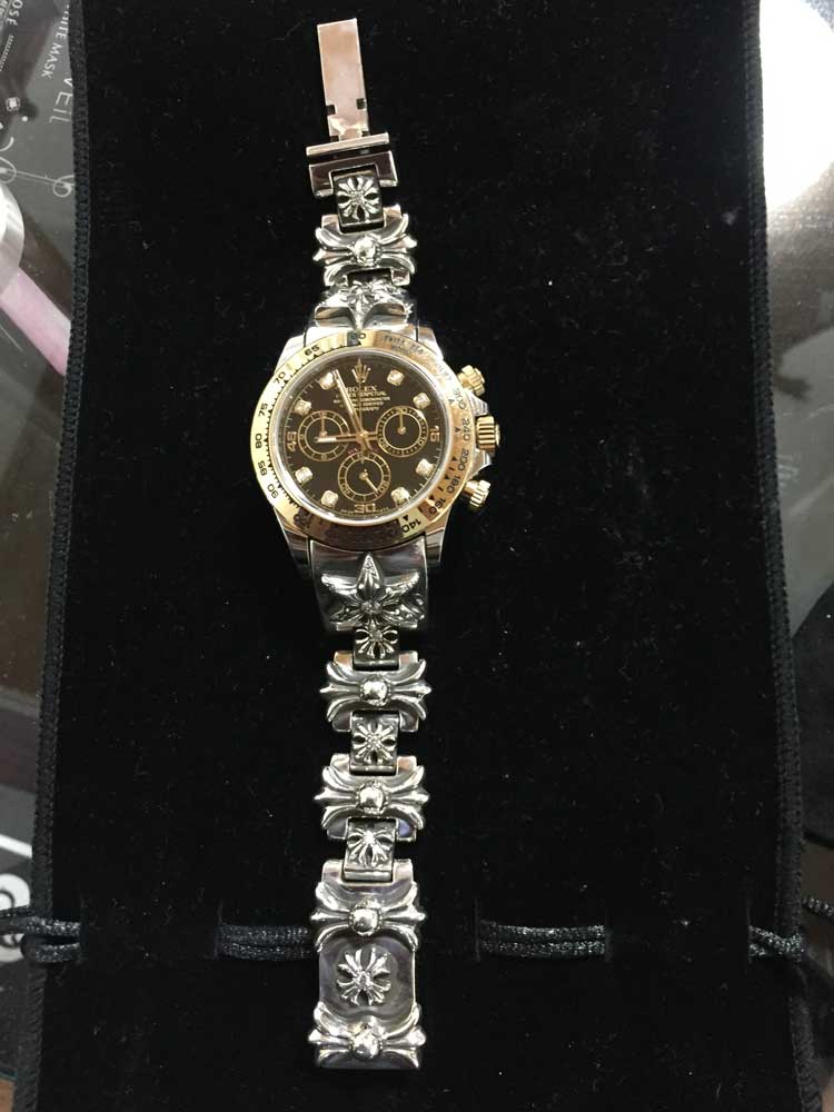 I.T.様いつもありがとうございます。 公開日:2018年5月9日 I.T.様いつもありがとうございます。 投稿ナビゲーション クロムハーツ ウォッチブレスのモチーフをチェンジしてダイヤパヴェカスタムしました。