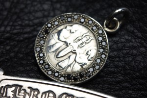 クロムハーツ エンジェルメダルチャーム ブラックダイヤパヴェカスタム