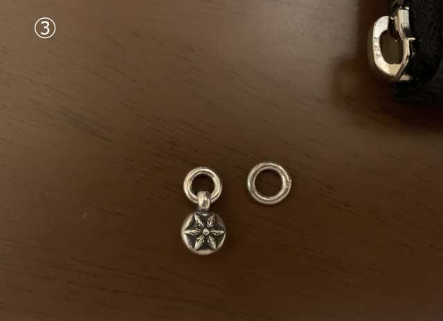 そこで写真③の以前使っていたクロスチャームのリングがあります(クロスは破損したのでリングのみ)