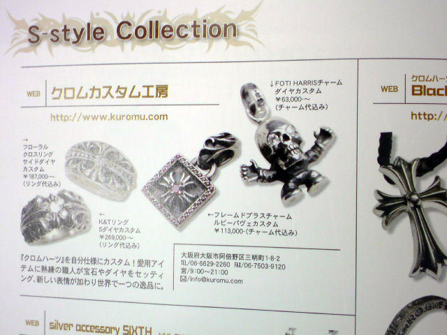 シルバーアクセ リアルスタイルに掲載 更新日:2015年9月30日 公開日:2009年6月12日 未分類 シルバーアクセ リアルスタイルに掲載 >『クロムハーツ』を自分仕様にカスタム! >愛用アイテムに熟練の職人が宝石やダイヤをセッティング、 >新しい表情が加わり世界で一つの逸品に。 P145の左上デス、↓ http://www.cosmicpub.jp/shopdetail/003009000008/order/ タグ ROREX クロムウォレット クロムハーツウォレット クロムハーツ財布 グロメット加工 メールマガジン 携帯ストラップ 関連記事 クロムハーツ 22Kのダイヤカスタムフレームドプラスチャームをダイヤパヴェにしました。クロムハーツ、フローラルハートリング、ダイヤパヴェカスタムクロムハーツ、スペーサーリング6mmのサイズ直しフローラルクロスリング1ダイヤをパヴェカスタム技稜会でキャスト(鋳造)の勉強会でした 投稿ナビゲーション ハリスティーターチャーム、ダイヤカスタムスペーサーリング6mmサイドダイヤカスタム