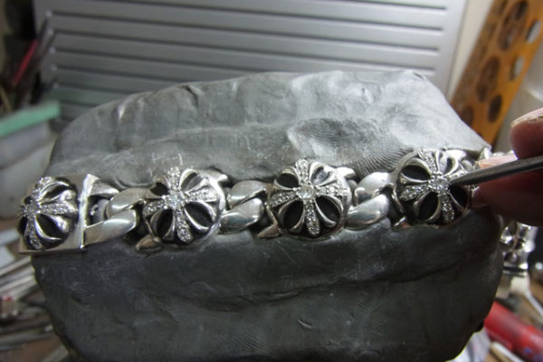 クロムハーツ クロスリンクブレスレットにダイヤをパヴェカスタムしました。 【かかった費用】ダイヤモンドメレー 91石 一般クラス(Iクラリティ)のダイヤモンドを使用&セッティング代鑑別書取得費用込み 総額 6 … 続きを読む クロムハーツ クロスリンクブレスレット ダイヤパヴェカスタム