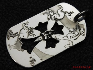 一枚目 Chrome Heartsペンダント(ドッグタグクロスダガー)3位作品、兎と蛙