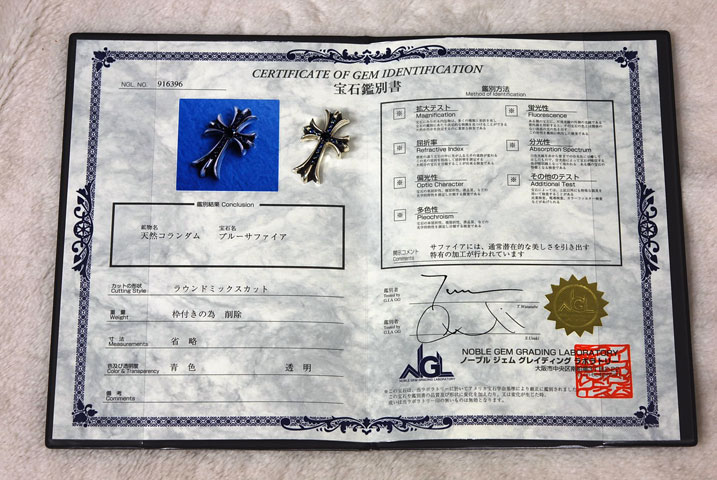 一枚目 クロムハーツ、クロスペンダントSM、ブルーサファイヤパヴェ