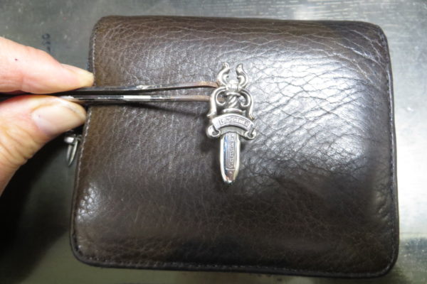 クロムハーツ迷彩の2つ折り財布にダガーパーツをカスタムしました。 ※カモフラ柄は経年で薄くなっています。 ※ダガーはお客様の持ち込み品でした。 クロムカスタム工房株式会社 代表 石津 雅之(info@kuromu.co … 続きを読む クロムハーツ カモフラレザースクエア ジップウォレットにダガーパーツをカスタム