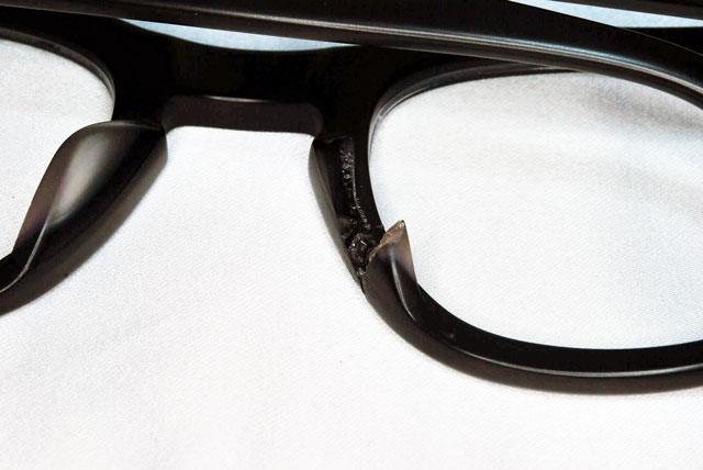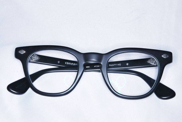 クロムハーツ メガネ PANTY HOのリム(枠)の破損部分を補修し、鼻パッドも交換しました。