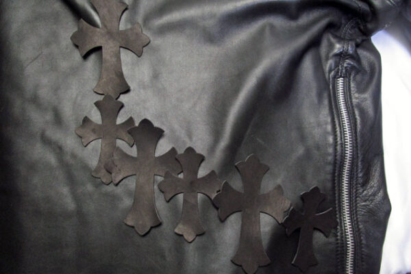 クロムハーツ ハーフジップ レザージャケット セメタリークロスパッチ補修