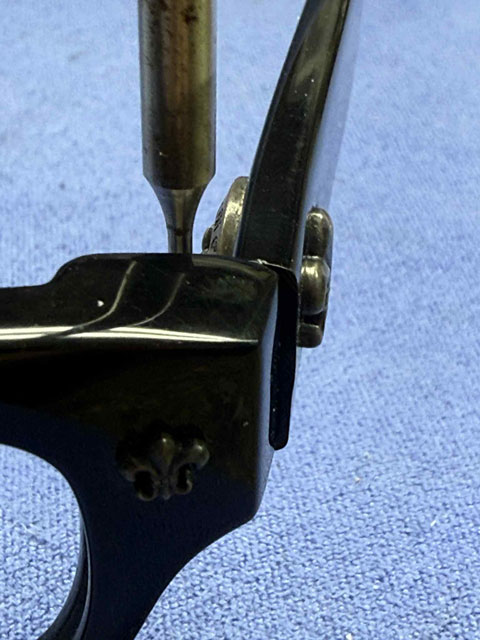 左右テンプルをフロント枠に組み込みと合口ズレを起こしますのでフロント枠の埋め込み蝶番を埋め込み直します。