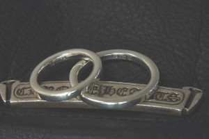 クロムハーツNTFLリングに、ダイヤとガーネットをカスタムし、内部にイニシャルを打刻しました。