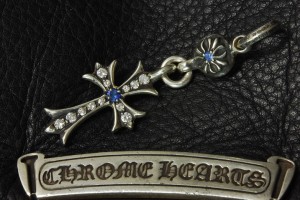 クロムハーツ、1ボールタイニーCHクロスチャーム、サファイヤ&ダイヤカスタム