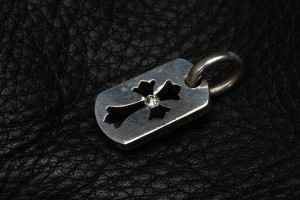 クロムハーツ、タイニーカットアウトクロスドッグタグのセンターにダイヤを1石カスタムしました。