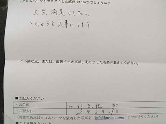 >大変満足でした。これからも大事にします。