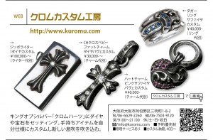 シルバーアクセリアルスタイルvol.4 に掲載していただきました。 更新日:2015年9月29日 公開日:2011年6月20日 未分類 クロムカスタム工房が、シルバーアクセリアルスタイルVOL.4に掲載していただきました。 156ページの左上です。 タグ ROREX 関連記事 シルバーブレスレットの金具を修理しました。スペーサーリング6mmルビーカスタムクロムハーツ大阪の場所教えてください?エメラルドのカスタムは、めちゃ難しい~スモールレイズドセメタリー ドッグタグ ブルーサファイヤカスタムクロムハーツ東京へ~ 投稿ナビゲーション CHクロスベビーファットチャーム、ダイヤパヴェカスタム1ボールタイニーCHクロスチャーム、ブラックダイヤパヴェカスタム