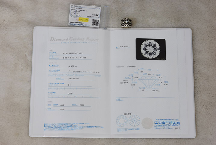 ダイヤモンドのクラスを証明する宝石鑑定書です。