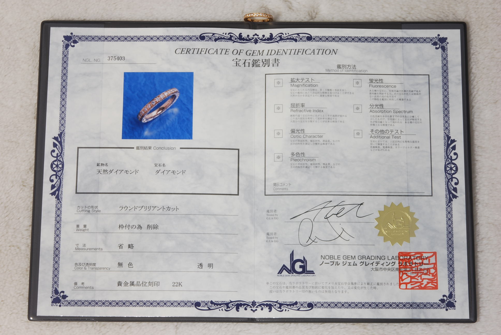 ダイヤモンドは一般クラス(Iクラリティ)を30石使用して、