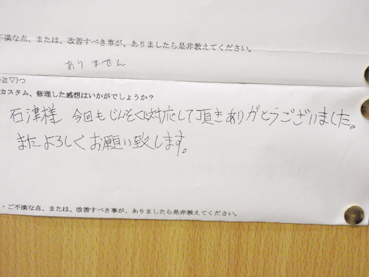 石津様 今回もじんそくに対応して頂きありがとうございました。