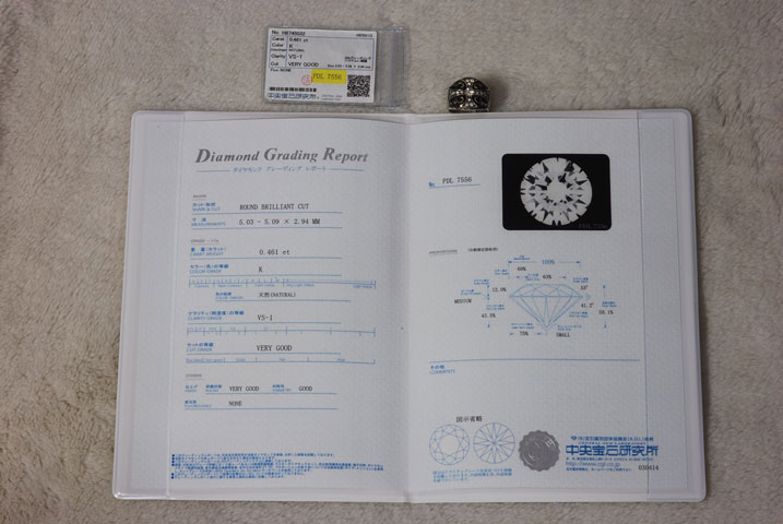 0.461カラット、Kカラー、VS1クラリティ、VGカットと記載されています。