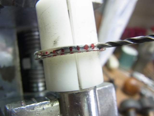 宝石と同じ直径のドリルで石合わせをします。