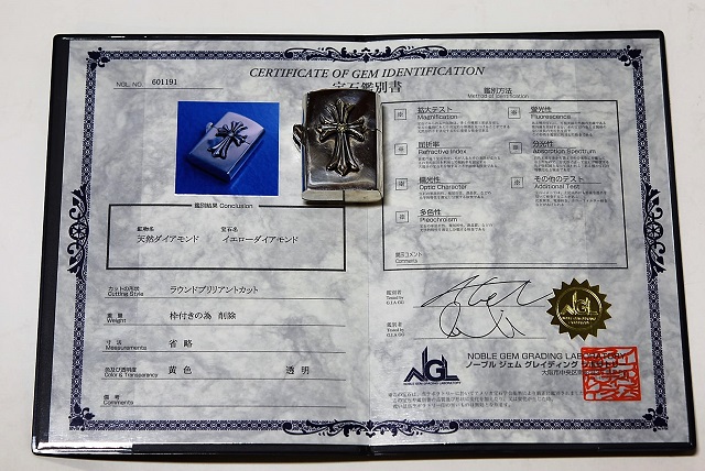 イエローダイヤを証明する宝石鑑別書です。