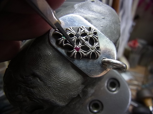 ルビーの爪をタガネで彫って作ります。 公開日:2016年11月30日 ルビーの爪をタガネで彫って作ります。 投稿ナビゲーション クロムハーツ レイズドセメタリークロス ドッグタグ スモールにマルチカラーの宝石をカスタムしました。