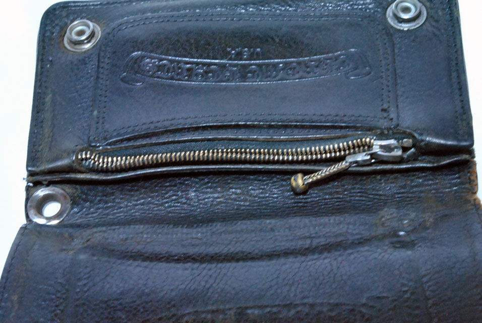 クロムハーツ 1スナップウォレット(riri)ファスナー交換|内側の破れ修理も同時に対応